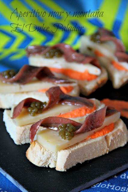 Aperitivo mar y montaña. Queso con Anchoas y Khay Avar Codium por El dulce paladar